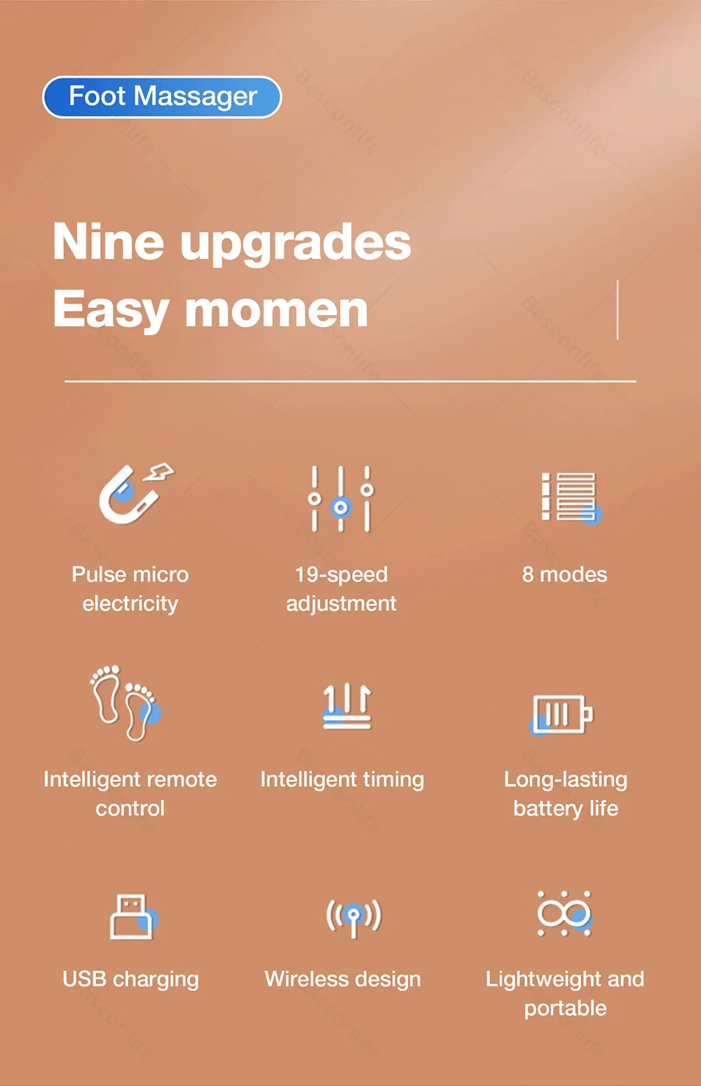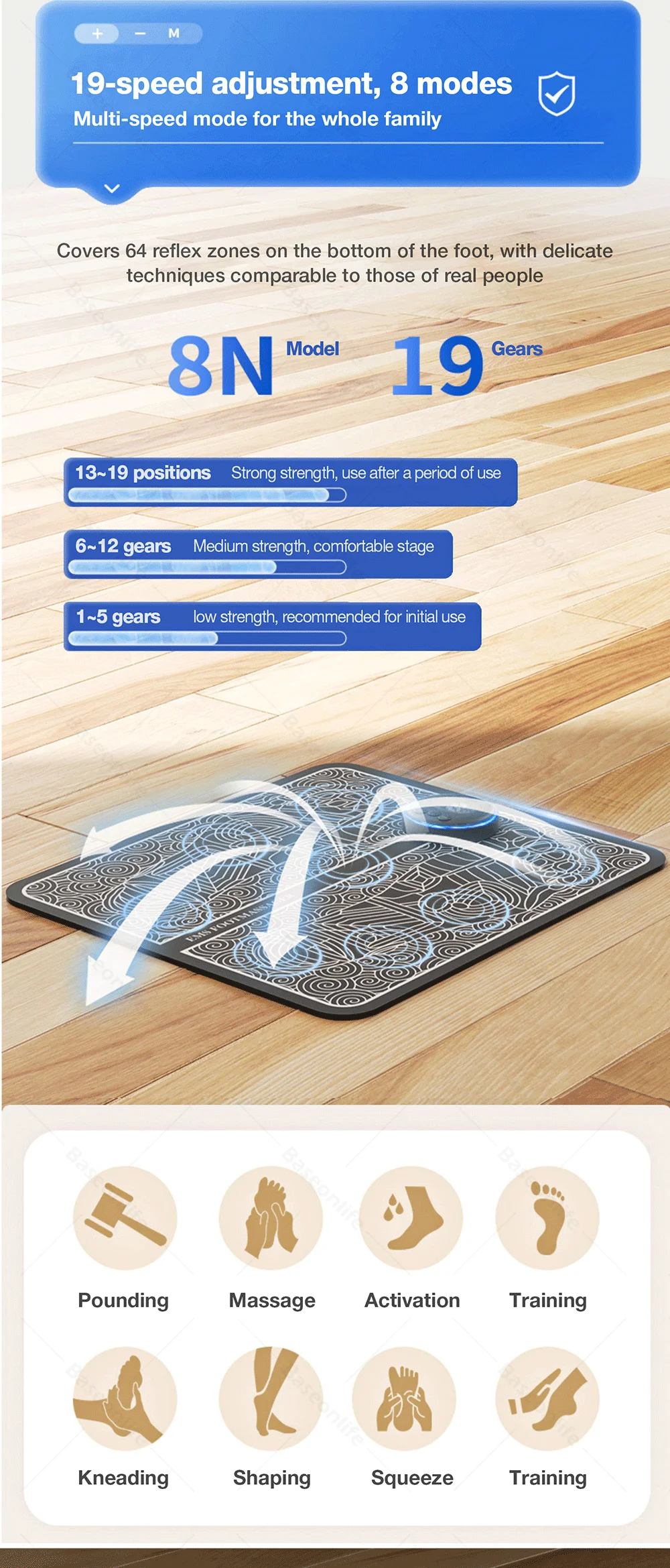 【19 LEVELS AND 8 MODES】- Massage, kneading, scraping, elbow pressure, acupuncture, cupping. And19 levels of intensity, to meet the different needs of different groups of people. Relieve foot tension and pain by targeting muscle.